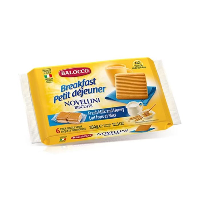 Novellini are light shortbread biscuits made with fresh Italian milk and honey, to give you taste and lightness. They are prepared without palm oil, preservatives, dyes, or hydrogenated fats. With non-genetically modified ingredients.