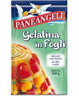 The gelatin in Sheets paneangeli is an excellent natural gelling agent: thanks to the process of selection of raw materials, a greater gelling power is guaranteed, with smaller sheets and lighter compared to traditional gelatin in sheets.